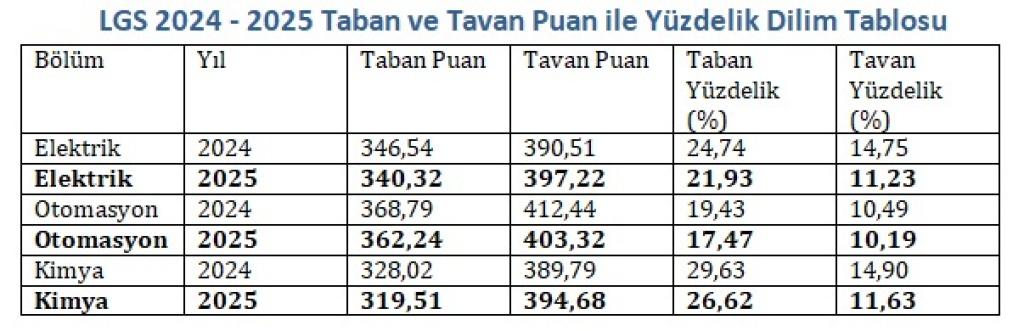 LGS 2024-2025 Taban ve Tavan Puan Yüzdelik Dilim Tablosu